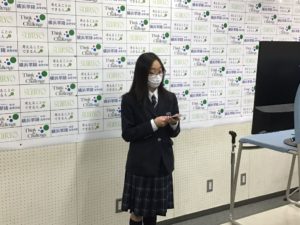 保健委員長からは体調管理の大切さについて。彼女は普段の全校集会でも感染症予防を訴えてくれています。打倒ウイルス!