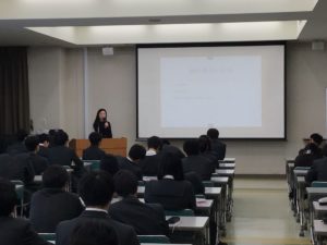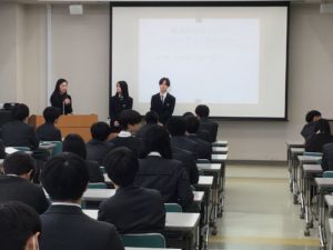 高校受験がないのでノホホンとしてる子もいますが、キラキラ輝く高校生になってほしいと進路講話会が開催されました。