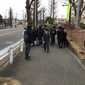 翠陵では年に数回の大掃除の日に周辺の掃除をしていますが、今回は学年主任のJ保先生と担任のT中先生が中心になって、中1生全員で通学路の大掃除を決行することになりました。