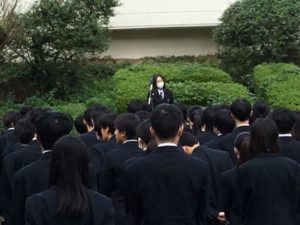 翠陵は月に1回くらい、生徒が運営する「生徒朝礼」を実施しています。