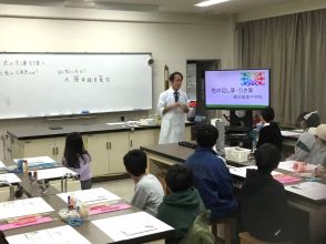小学生には授業体験で、「レインボースコープ」を作成してもらいました。
