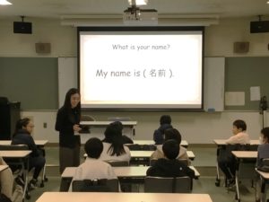 説明会では、校長の挨拶の後、小学生には英語の授業体験に参加してもらいました。短い時間ではありましたが、実際の授業の雰囲気を楽しく感じていただきました。